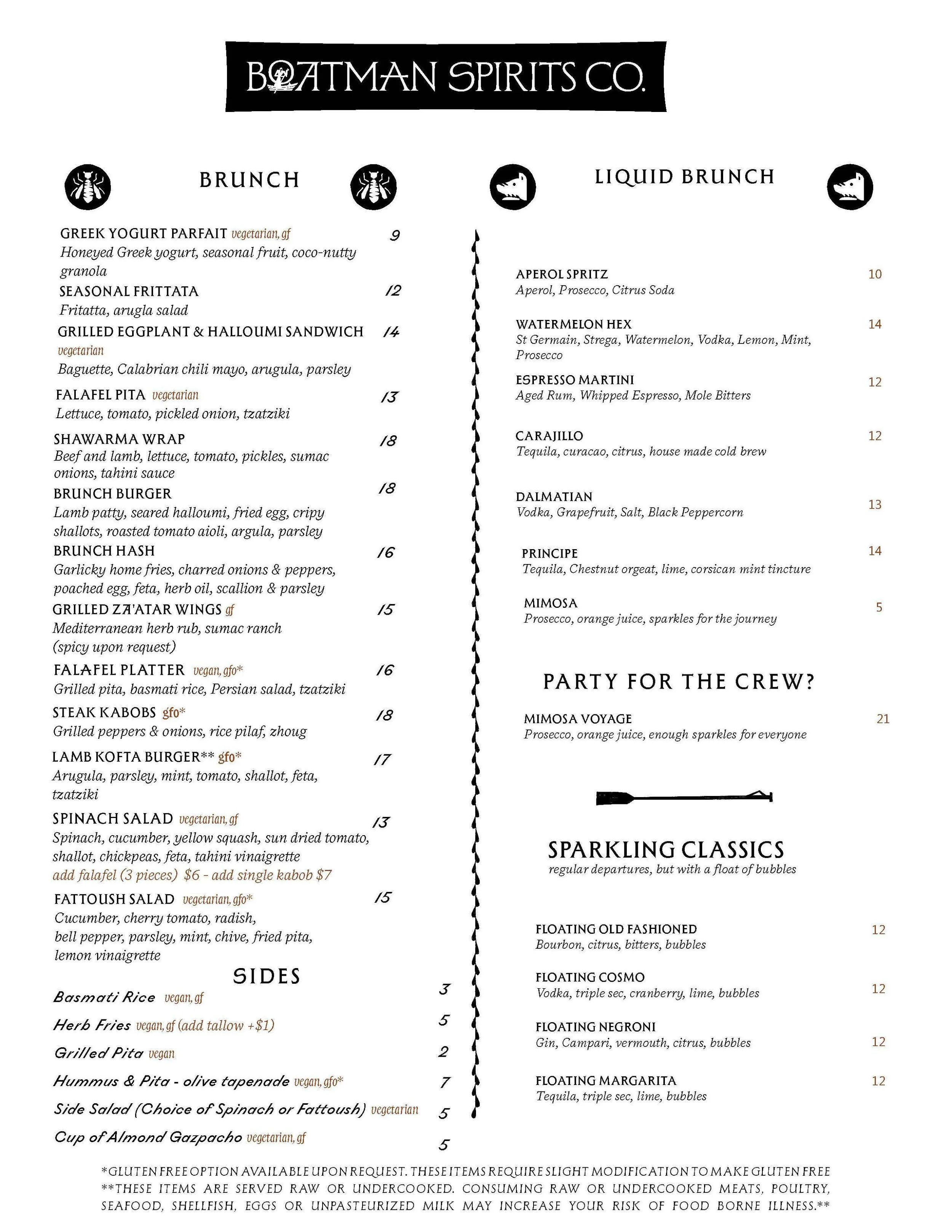 Brunch Menu, Saturday and Sunday, 11am-2pm